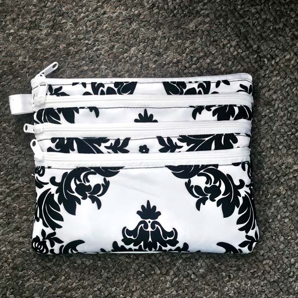 This pouch has four zipper pockets. I use it to store items that are either too big or too small to be in my pockets.